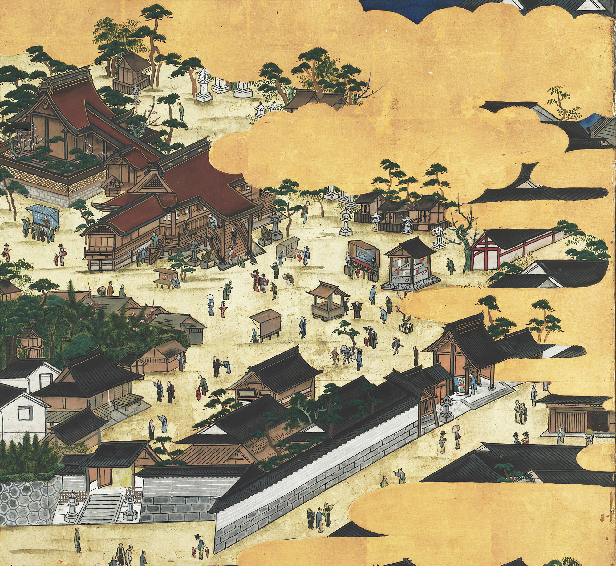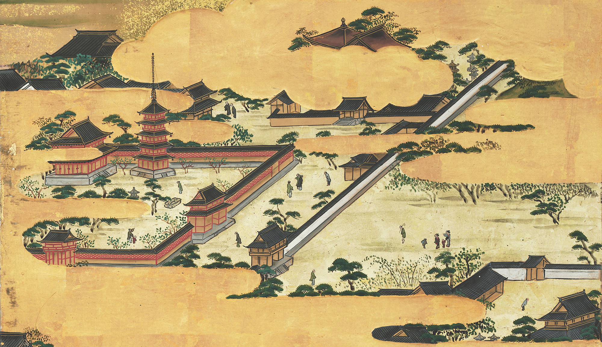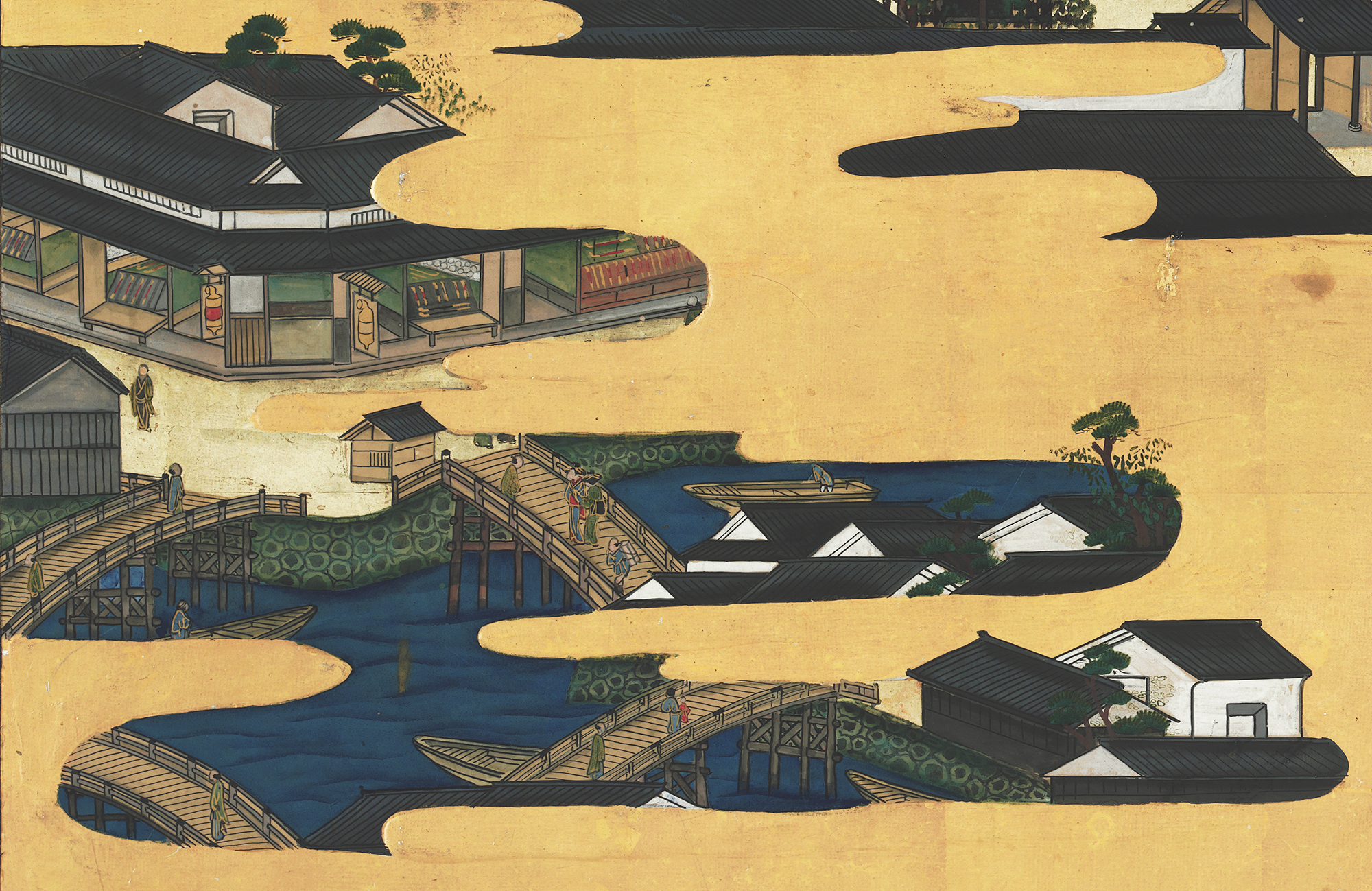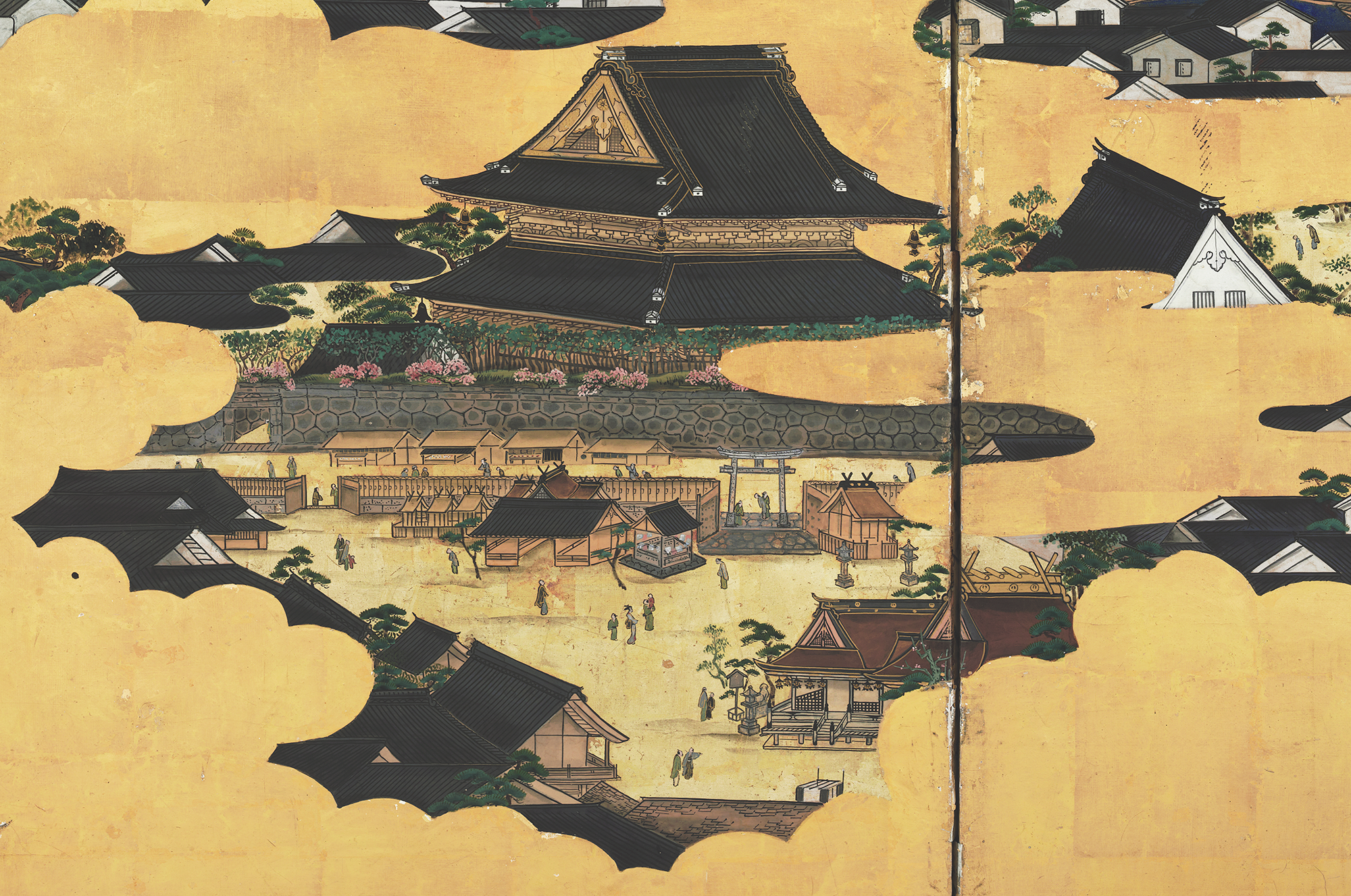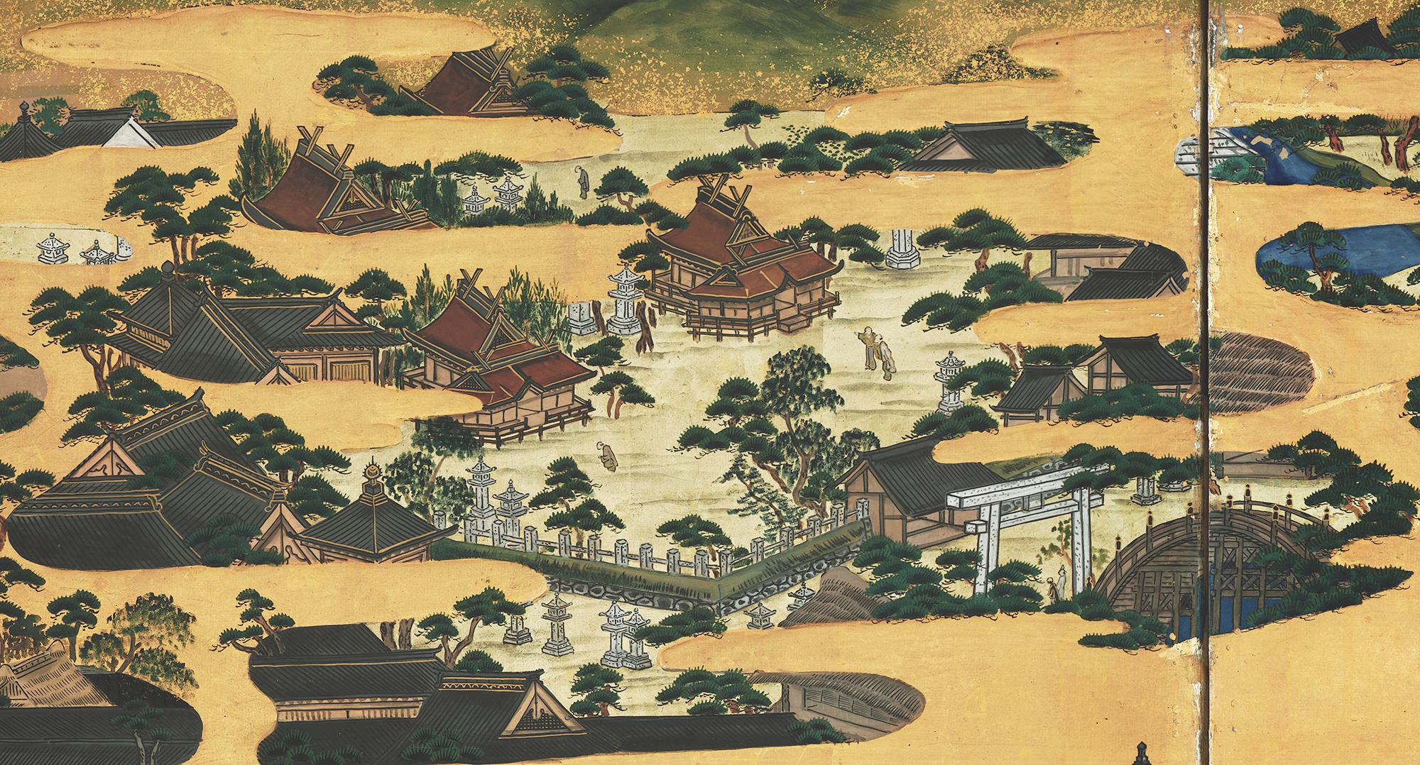 屏風に描かれた場面と現在地図との比較