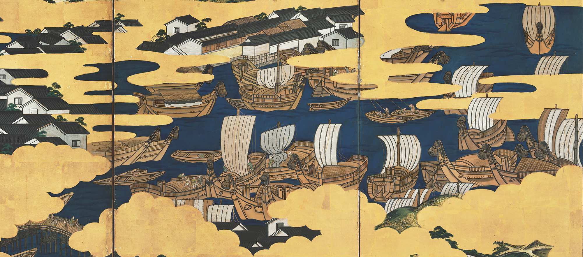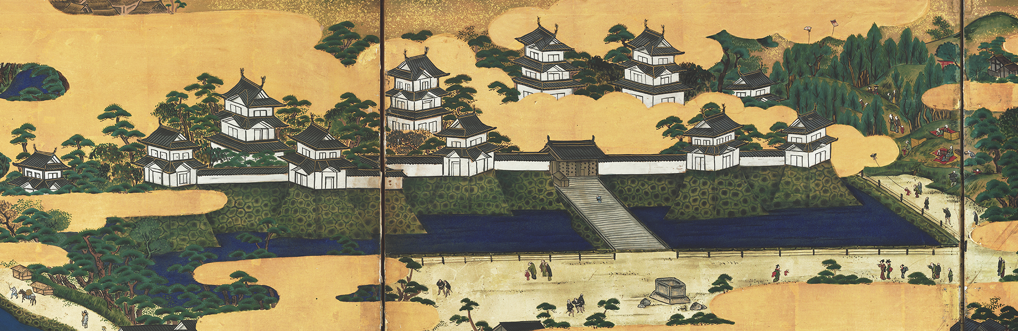 このサイトでは、屏風に描かれた場面と現在地図を見ることができます。